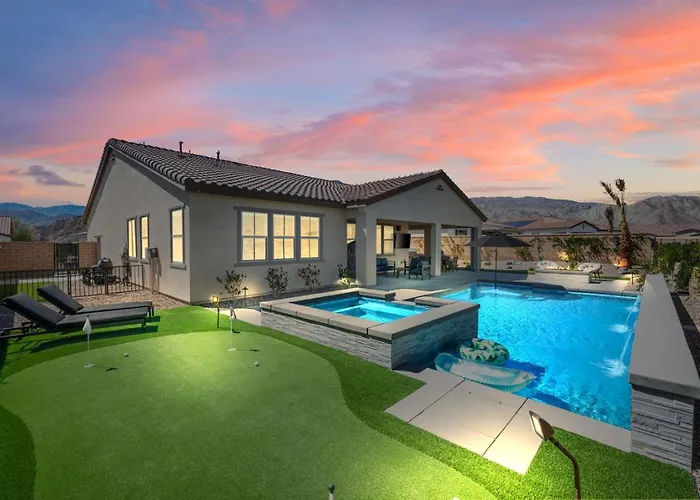 La Quinta şehrinde yer alan Luxury Desert Escape Private Pool Putting Green Outdoor Oasis, sıcak küvet içeren konaklama olanağı sunmaktadır. Lake Cahuilla Recreation Area 10 dakikalık, Lake Cahuilla Park ise 15 dakikalık bir sürüş mesafesindedir.